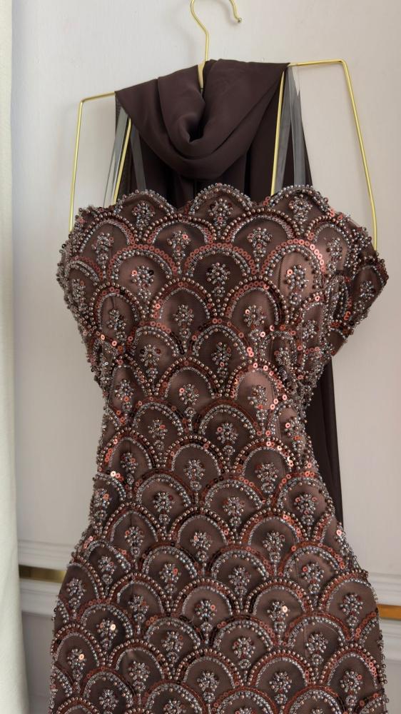 طريقه الغسيل والكي بمراعاة تعليمات الغسيل الموجودة على العناية بالملابس المو جودة على الفستان قبل غسله. يُفضل غسل الفستان يدويًا باستخدام ماء بارد ومنظف ملابس مناسب. ينصح بعدم استخدام المبيضات أو المواد الكاشطة عند غسل الفستان. يجب تجفيف الفستان بطريقة م سطحة على سطح نظيف ومستوٍ. يُنصح بعدم استخدام المكواة بحرارة عالية على الفستان، ويُفضل استخدام مكواة بحرارة متوسطة إلى منخفضة عند الضرورة. يُفضل تخزين الفستان في مكان جاف ومناسب، معتجنب تعرضه لضغط أو تجاوز الأشياء الثقيلة عليه.